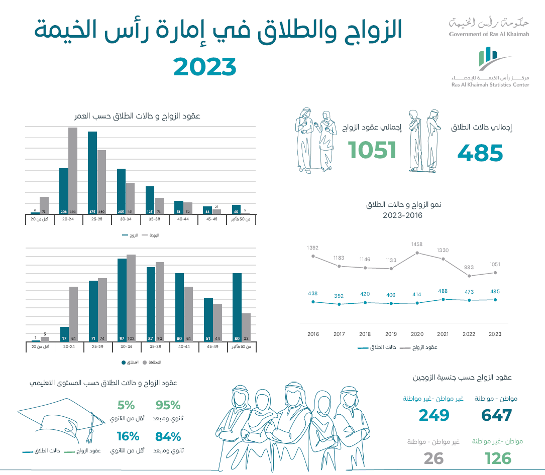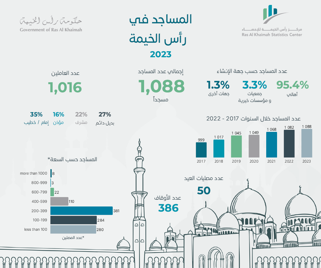 المساجد في رأس الخيمةبيانات 2023 انفوجرافيك الكتاب الإحصائي السنوي بيانات 2023 الزواج و الطلاق في رأس الخيمةبيانات 2023